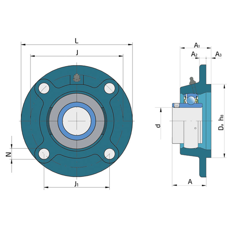 Distance from the housing flange to the front of the inner ring of the bearing |