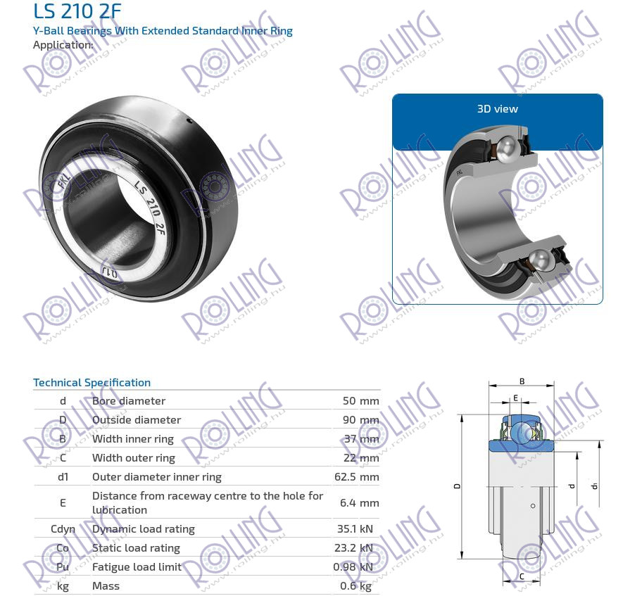 Dual sealing, protection cover placed on the inner ring protects against rough impurity particles and makes the labyrinth with the sheet part of the seal; then the sealing S type, with the labyrinth between the sheet part and the rubber lip that conducts the contact sealing. The friction and speeds are the same as with S but has much better protection against rough impurity particles. It is very good sealing system: the sheet part protects the seal from the soil, dust and rough particles. At the same time makes the labyrinth with the rubber part. The rubber part provides the contact sealing that prevents the penetration of the finer impurities, water, moisture, steam etc. Suitable for heavier conditions due to better protection against foreign matters. It is used with the Y bearings (standard).