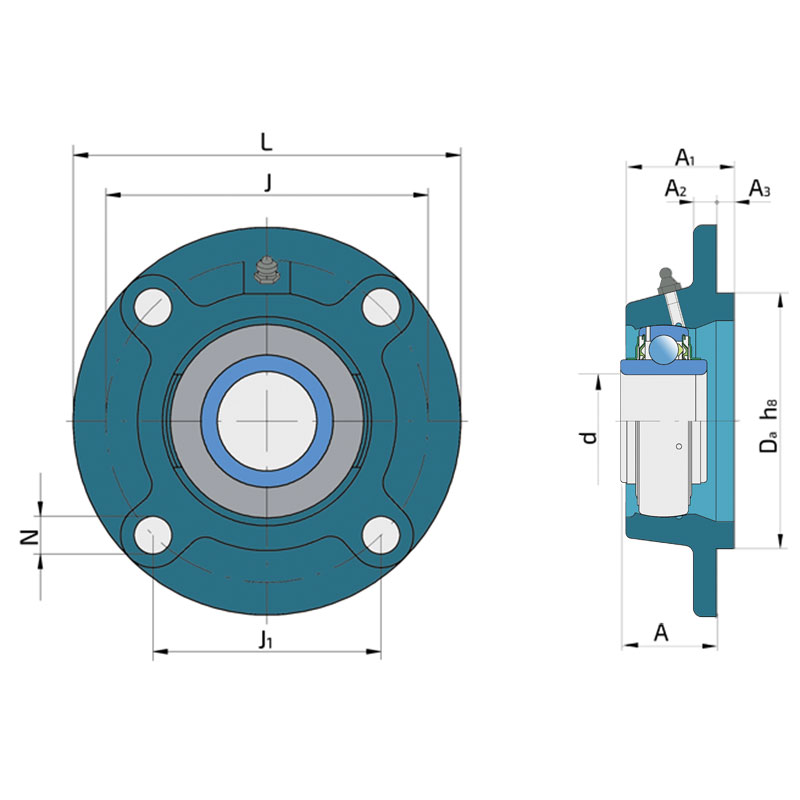 Distance from the housing flange to the front of the inner ring of the bearing |