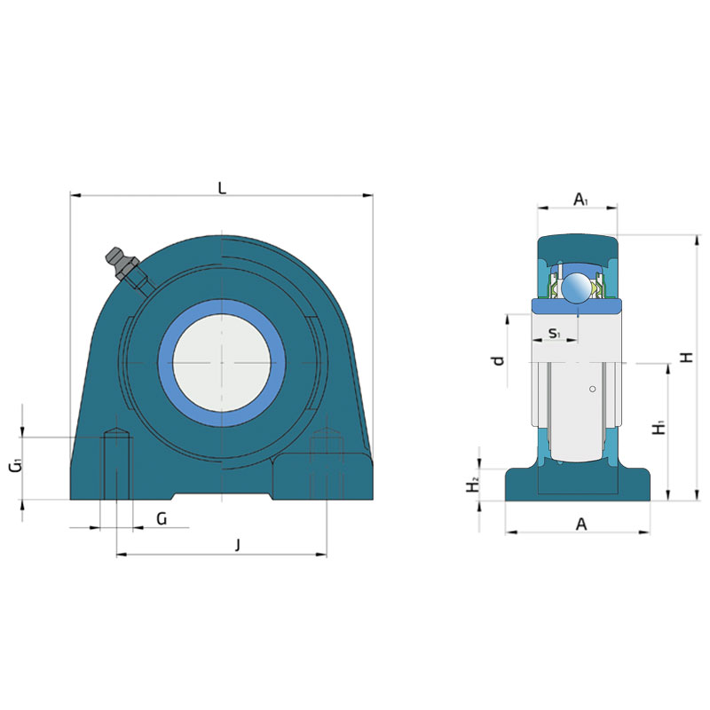 Dual sealing, protection cover placed on the inner ring protects against rough impurity particles and makes the labyrinth with the sheet part of the seal; then the sealing S type, with the labyrinth between the sheet part and the rubber lip that conducts the contact sealing. The friction and speeds are the same as with S but has much better protection against rough impurity particles. It is very good sealing system: the sheet part protects the seal from the soil, dust and rough particles. At the same time makes the labyrinth with the rubber part. The rubber part provides the contact sealing that prevents the penetration of the finer impurities, water, moisture, steam etc. Suitable for heavier conditions due to better protection against foreign matters. It is used with the Y bearings (standard).