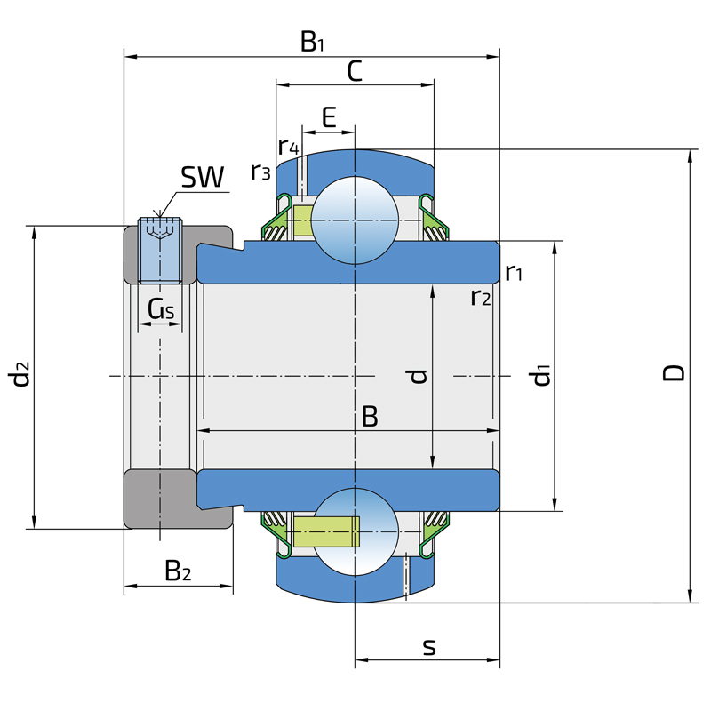 3-lip seal on the both side of the bearing, provides equal protection against contamination. Recommended for application where the possibility of contamination is the same on the both side.