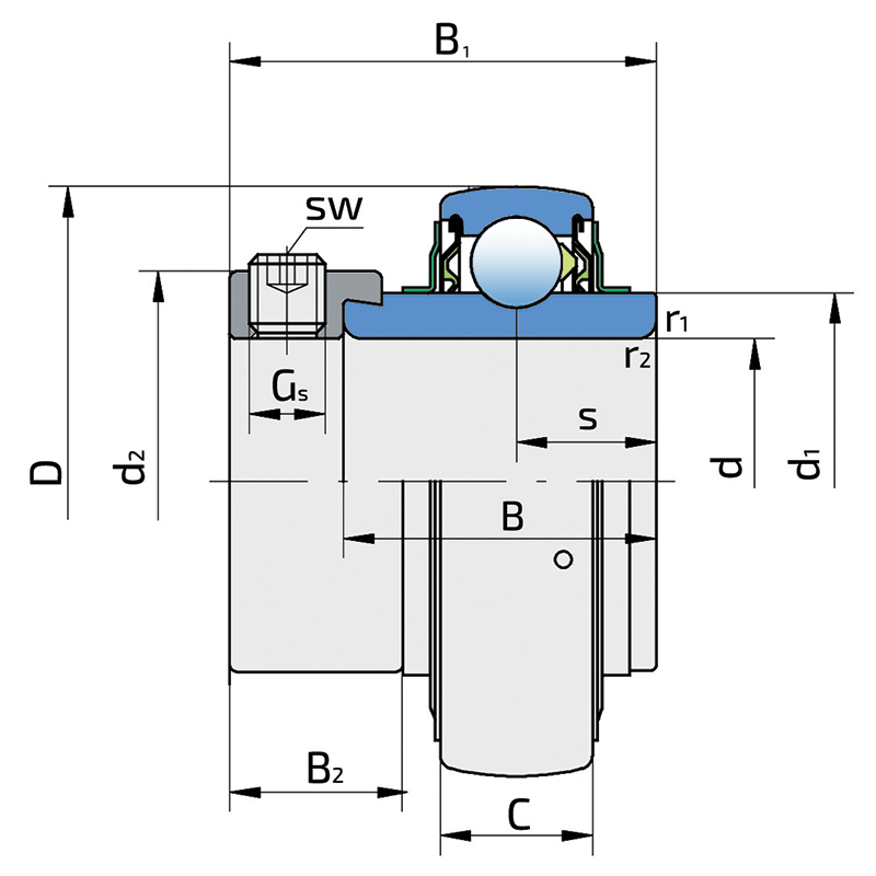 Dual sealing, protection cover placed on the inner ring protects against rough impurity particles and makes the labyrinth with the sheet part of the seal; then the sealing S type, with the labyrinth between the sheet part and the rubber lip that conducts the contact sealing. The friction and speeds are the same as with S but has much better protection against rough impurity particles. It is very good sealing system: the sheet part protects the seal from the soil, dust and rough particles. At the same time makes the labyrinth with the rubber part. The rubber part provides the contact sealing that prevents the penetration of the finer impurities, water, moisture, steam etc. Suitable for heavier conditions due to better protection against foreign matters. It is used with the Y bearings (standard).