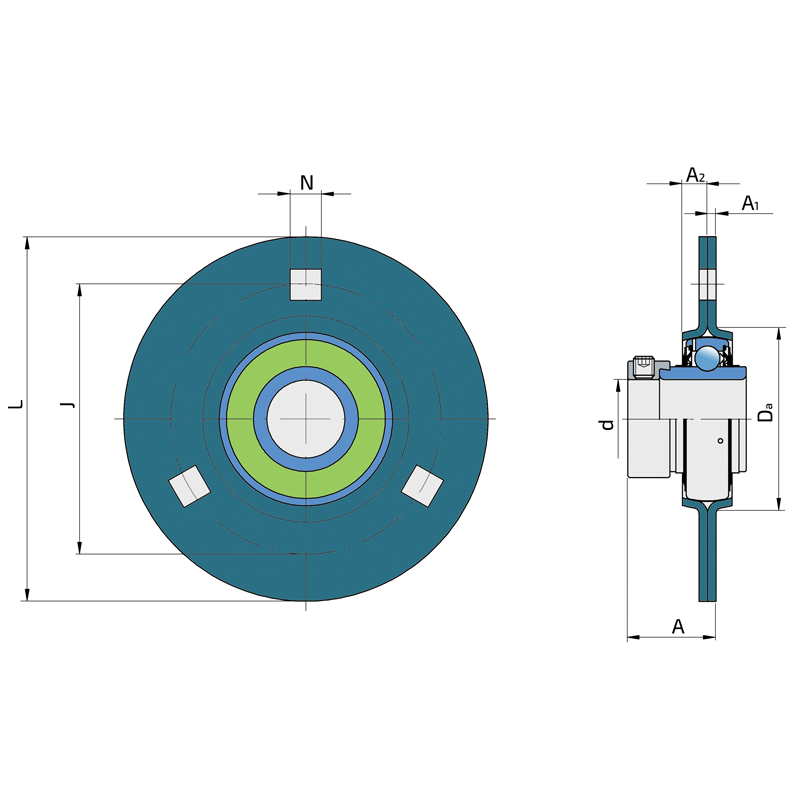 Distance from the housing flange to the front of the inner ring of the bearing |