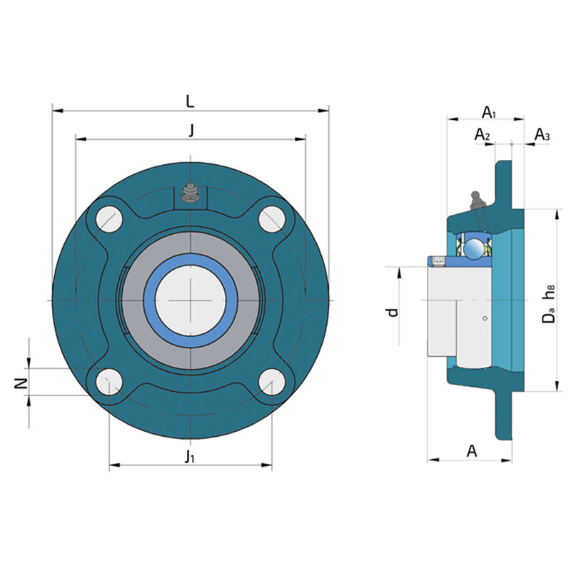 Distance from the housing flange to the front of the inner ring of the bearing |