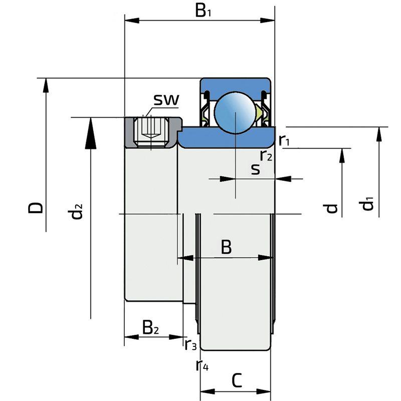 Single lip seal with the labyrinth between the sheet part and the rubber lip which conducts the contact sealing. The friction and speeds are the same as with RS but provides much better protection against the rough impurity particles. This is very good sealing system: the sheet part protects the seal from the soil, dust and rough particles. At the same time makes the labyrinth with the rubber part. The rubber part provides contact sealing which prevents penetration of finer impurities, water, moisture, steam etc. Suitable for neutral conditions because of the presence of the foreign materials. It is used with the Y bearing (standard) and deep groove ball bearings.