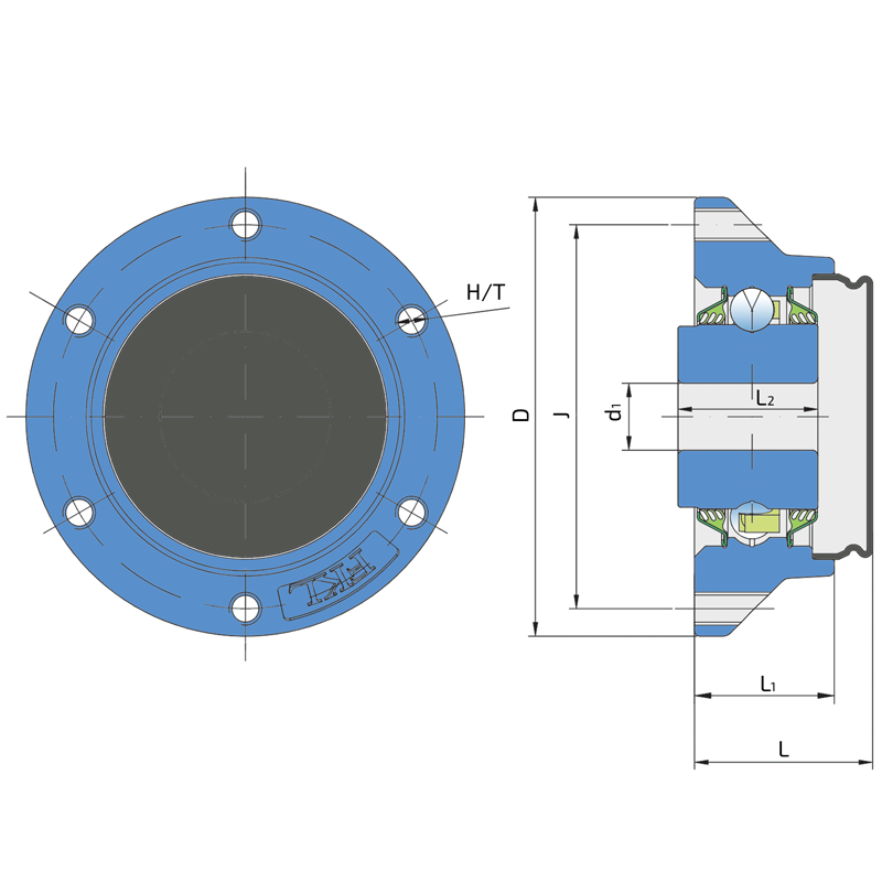 Sealing T SEAL / T SEAL+METAL PROTECTIVE CAP 3-lip seal on the both side with Metal protective cap on the front side. 3-lip seal on the both side of the bearing, provides equal protection against contamination. Recommended for application where the possibility of contamination is the same on the both side.