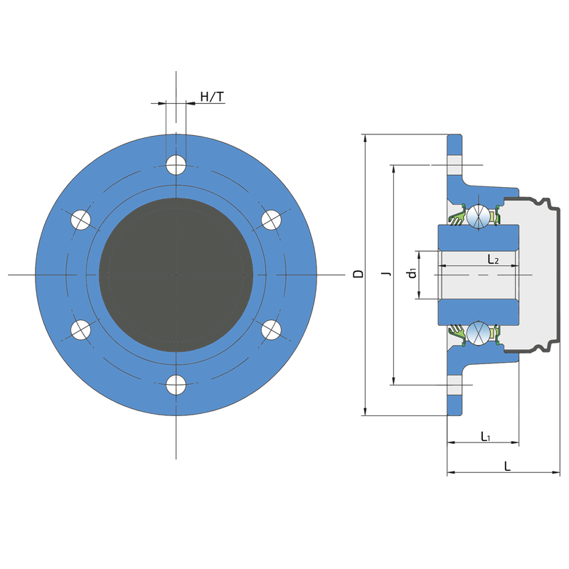 3-lip seal on the base side and the S seal with Metal protective cap on the front side. 3-lip seal on the base side also protected with attached disc, protecting the bearing from contamination. S seal with a Metal protective cap on the front side eliminates bearing contaminants.