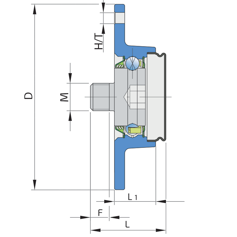 3-lip seal on the base side and the S seal with Metal protective cap on the front side. 3-lip seal on the base side also protected with attached disc, protecting the bearing from contamination. S seal with a Metal protective cap on the front side eliminates bearing contaminants.