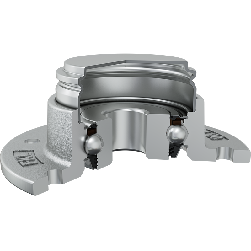 3-lip seal on the base side and the S seal with Metal protective cap on the front side. 3-lip seal on the base side also protected with attached disc, protecting the bearing from contamination. S seal with a Metal protective cap on the front side eliminates bearing contaminants.