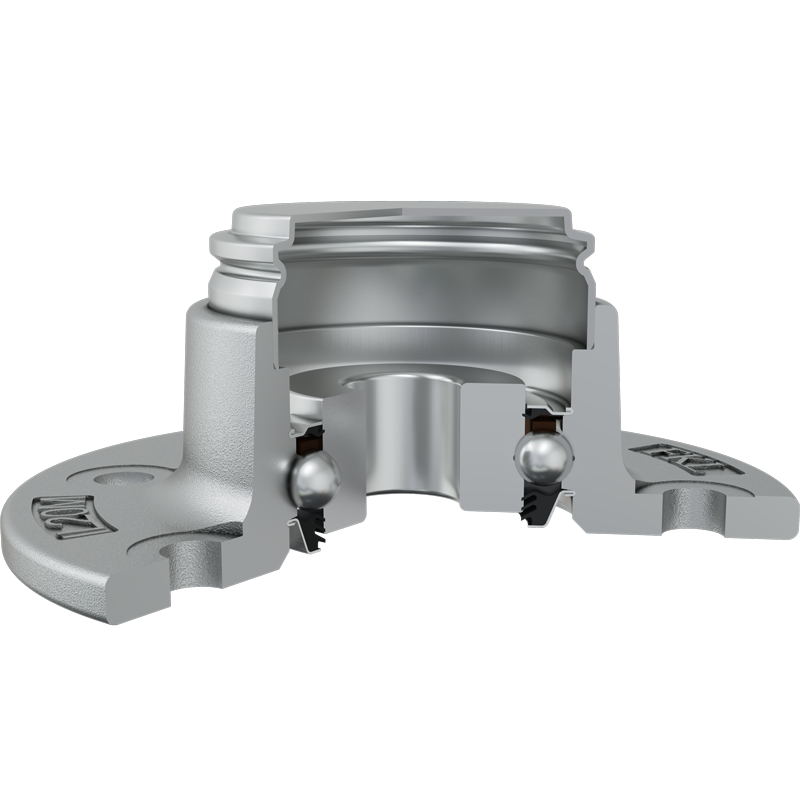3-lip seal on the base side and the S seal with Metal protective cap on the front side. 3-lip seal on the base side also protected with attached disc, protecting the bearing from contamination. S seal with a Metal protective cap on the front side eliminates bearing contaminants.