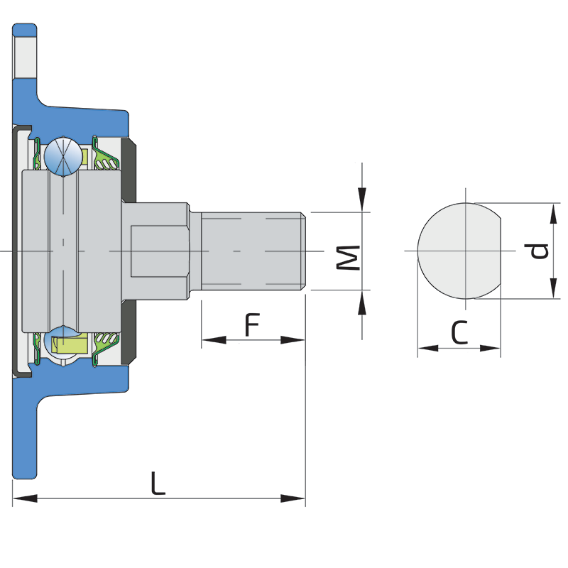 Sheet metal shield and S seal on the base side and 3-lip seal with Steel plate on the front side which is exposed to contaminants. Sheet metal shield and S seal together with attached disc eliminates the possibility of contamination from the base side. The 3-lip seal on the front side protects the bearing from contaminant penetration. The Steel plate protects the seal from mechanical damage.