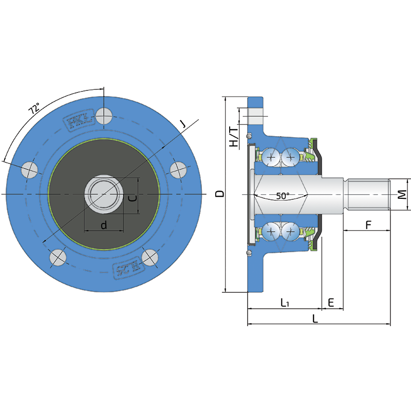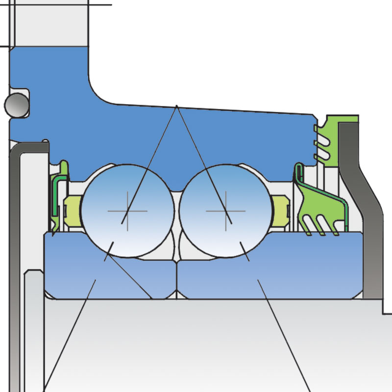 O-ring, Sheet metal shield and RS seal on the base side and the 3-lip seal, reinforced with frontal 3-lip seal and Metal protective cover on the front side, which is exposed to the contaminants. O-ring, Sheet metal shield and RS seal together with attached disc eliminates the possibility of contamination from the base side. The 3-lip seal in combination with the frontal 3-lip seal provides better protection of contamination and extend the bearing life. The Metal protective cover of the frontal 3-lip seal also protect the inner 3-lip seal from mechanical damages.
