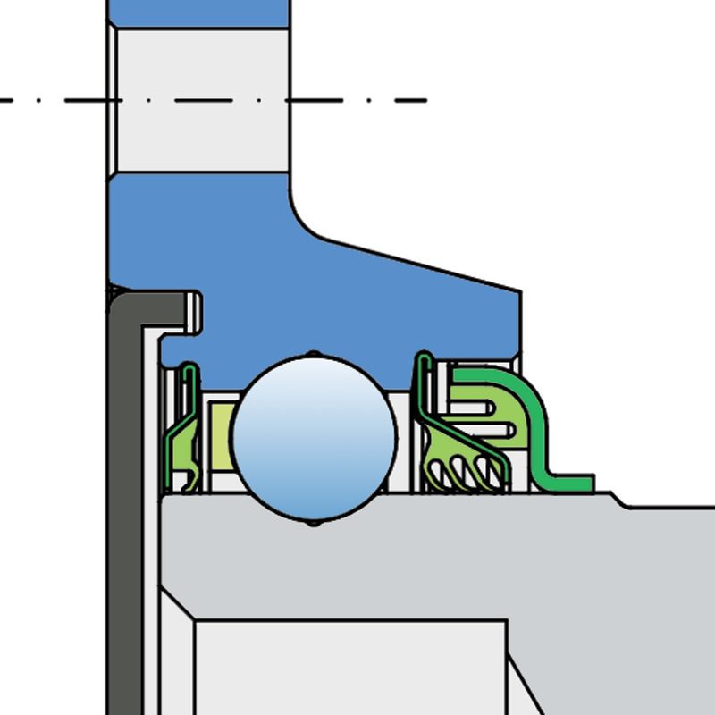Sealing SHEET METAL SHIELD + S SEAL / DOUBLE T SEAL + STEEL SHIELD Sheet metal shield and S seal on the base side and the double 3-lip seal with Steel shield on the front side. Sheet metal shield and S seal on the base side completely excludes all contaminants. Double 3-lip seal protects the front side mauch longer than the just comaparing to the regular one 3-lip seal. Steel shield is additional, strong protection of the double 3-lip seal against mechanical damage.