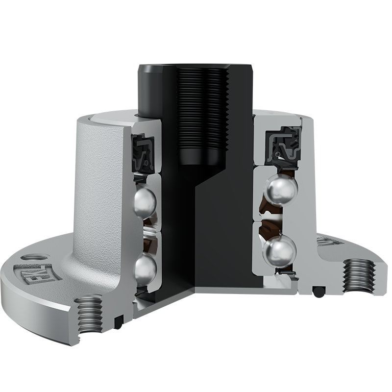 O-ring, Sheet metal shield and RS seal on the base side and RS seal, Dirtblock seal with Forged cover plate on the front side which is exposed to contaminants. O-ring, Sheet metal shield and RS seal together with attached disc eliminates the possibility of contamination from the base side. Dirtblock seal is designed for hard working condition at unfriendly environment. Half metal – half rubber outside diameter provides reliable seal retention in the bore and improves sealing performance. Inside diameter is covered by rubber and improves sealing performance and easy installation. Forged cover plate is additional, strong protection of the Dirtblock seal against mechanical damage. This sealing provides maximum protection against liquid or solid contaminants, which significantly extends bearing service life.