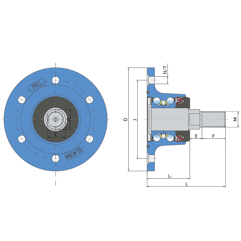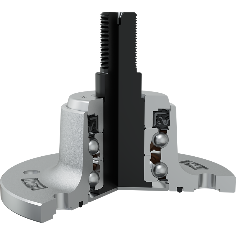 O-ring, Sheet metal shield and RS seal on the base side and RS seal, Dirtblock seal with Forged cover plate on the front side which is exposed to contaminants. O-ring, Sheet metal shield and RS seal together with attached disc eliminates the possibility of contamination from the base side. Dirtblock seal is designed for hard working condition at unfriendly environment. Half metal – half rubber outside diameter provides reliable seal retention in the bore and improves sealing performance. Inside diameter is covered by rubber and improves sealing performance and easy installation. Forged cover plate is additional, strong protection of the Dirtblock seal against mechanical damage. This sealing provides maximum protection against liquid or solid contaminants, which significantly extends bearing service life.