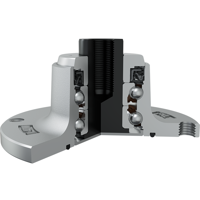 O-ring, Sheet metal shield and RS seal on the base side and RS seal, Dirtblock seal with Forged cover plate on the front side which is exposed to contaminants. O-ring, Sheet metal shield and RS seal together with attached disc eliminates the possibility of contamination from the base side. Dirtblock seal is designed for hard working condition at unfriendly environment. Half metal – half rubber outside diameter provides reliable seal retention in the bore and improves sealing performance. Inside diameter is covered by rubber and improves sealing performance and easy installation. Forged cover plate is additional, strong protection of the Dirtblock seal against mechanical damage. This sealing provides maximum protection against liquid or solid contaminants, which significantly extends bearing service life.