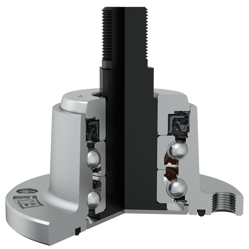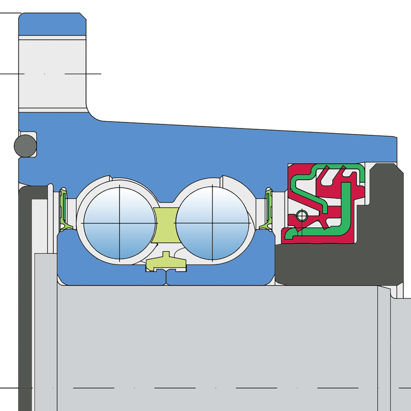 O-ring, Sheet metal shield and RS seal on the base side and RS seal, Dirtblock seal with Forged cover plate on the front side which is exposed to contaminants. O-ring, Sheet metal shield and RS seal together with attached disc eliminates the possibility of contamination from the base side. Dirtblock seal is designed for hard working condition at unfriendly environment. Half metal – half rubber outside diameter provides reliable seal retention in the bore and improves sealing performance. Inside diameter is covered by rubber and improves sealing performance and easy installation. Forged cover plate is additional, strong protection of the Dirtblock seal against mechanical damage. This sealing provides maximum protection against liquid or solid contaminants, which significantly extends bearing service life.