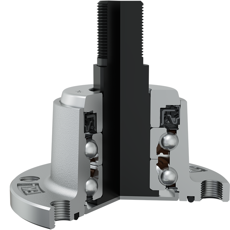 O-ring, Sheet metal shield and RS seal on the base side and RS seal, Dirtblock seal with Forged cover plate on the front side which is exposed to contaminants. O-ring, Sheet metal shield and RS seal together with attached disc eliminates the possibility of contamination from the base side. Dirtblock seal is designed for hard working condition at unfriendly environment. Half metal – half rubber outside diameter provides reliable seal retention in the bore and improves sealing performance. Inside diameter is covered by rubber and improves sealing performance and easy installation. Forged cover plate is additional, strong protection of the Dirtblock seal against mechanical damage. This sealing provides maximum protection against liquid or solid contaminants, which significantly extends bearing service life.