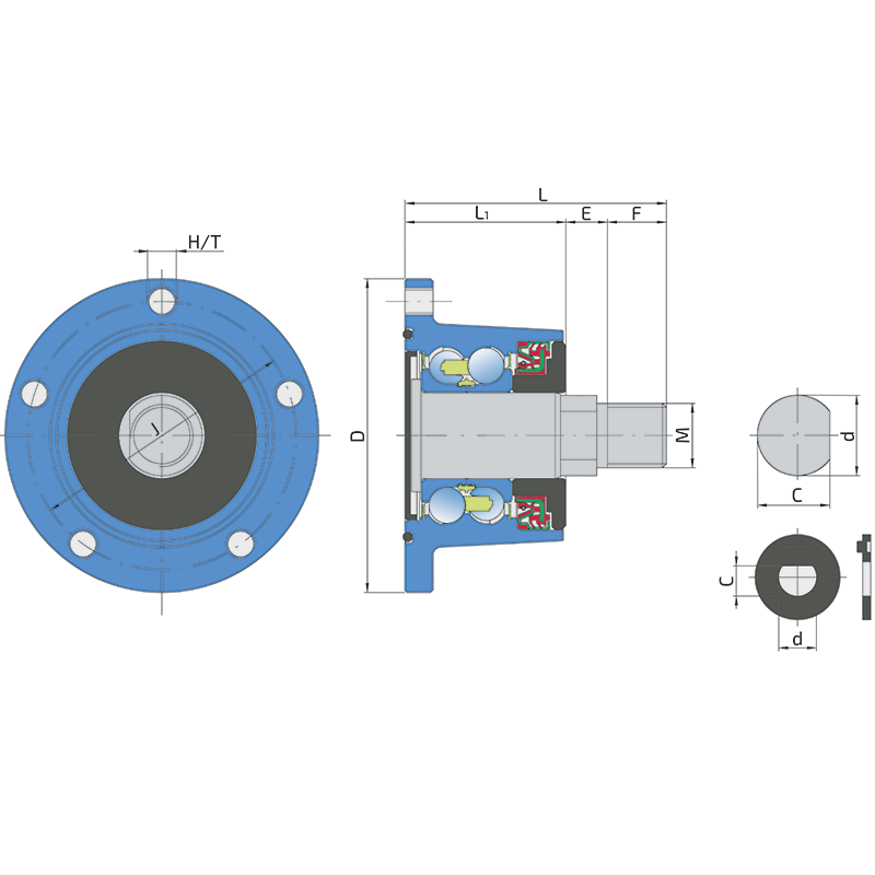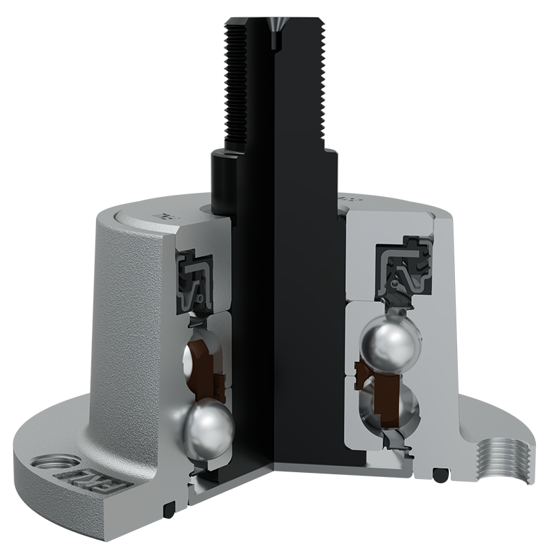 O-ring, Sheet metal shield and RS seal on the base side and RS seal, Dirtblock seal with Forged cover plate on the front side which is exposed to contaminants. O-ring, Sheet metal shield and RS seal together with attached disc eliminates the possibility of contamination from the base side. Dirtblock seal is designed for hard working condition at unfriendly environment. Half metal – half rubber outside diameter provides reliable seal retention in the bore and improves sealing performance. Inside diameter is covered by rubber and improves sealing performance and easy installation. Forged cover plate is additional, strong protection of the Dirtblock seal against mechanical damage. This sealing provides maximum protection against liquid or solid contaminants, which significantly extends bearing service life.