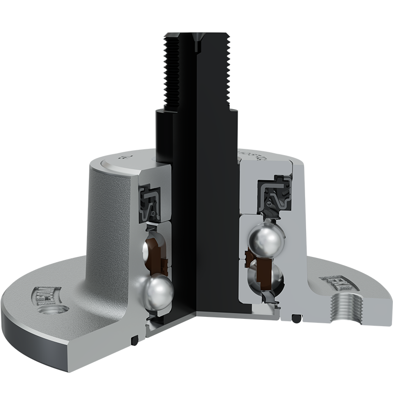 O-ring, Sheet metal shield and RS seal on the base side and RS seal, Dirtblock seal with Forged cover plate on the front side which is exposed to contaminants. O-ring, Sheet metal shield and RS seal together with attached disc eliminates the possibility of contamination from the base side. Dirtblock seal is designed for hard working condition at unfriendly environment. Half metal – half rubber outside diameter provides reliable seal retention in the bore and improves sealing performance. Inside diameter is covered by rubber and improves sealing performance and easy installation. Forged cover plate is additional, strong protection of the Dirtblock seal against mechanical damage. This sealing provides maximum protection against liquid or solid contaminants, which significantly extends bearing service life.