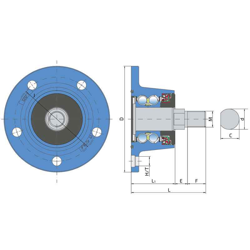 O-ring, Sheet metal shield and RS seal on the base side and RS seal, Dirtblock seal with Forged cover plate on the front side which is exposed to contaminants. O-ring, Sheet metal shield and RS seal together with attached disc eliminates the possibility of contamination from the base side. Dirtblock seal is designed for hard working condition at unfriendly environment. Half metal – half rubber outside diameter provides reliable seal retention in the bore and improves sealing performance. Inside diameter is covered by rubber and improves sealing performance and easy installation. Forged cover plate is additional, strong protection of the Dirtblock seal against mechanical damage. This sealing provides maximum protection against liquid or solid contaminants, which significantly extends bearing service life.