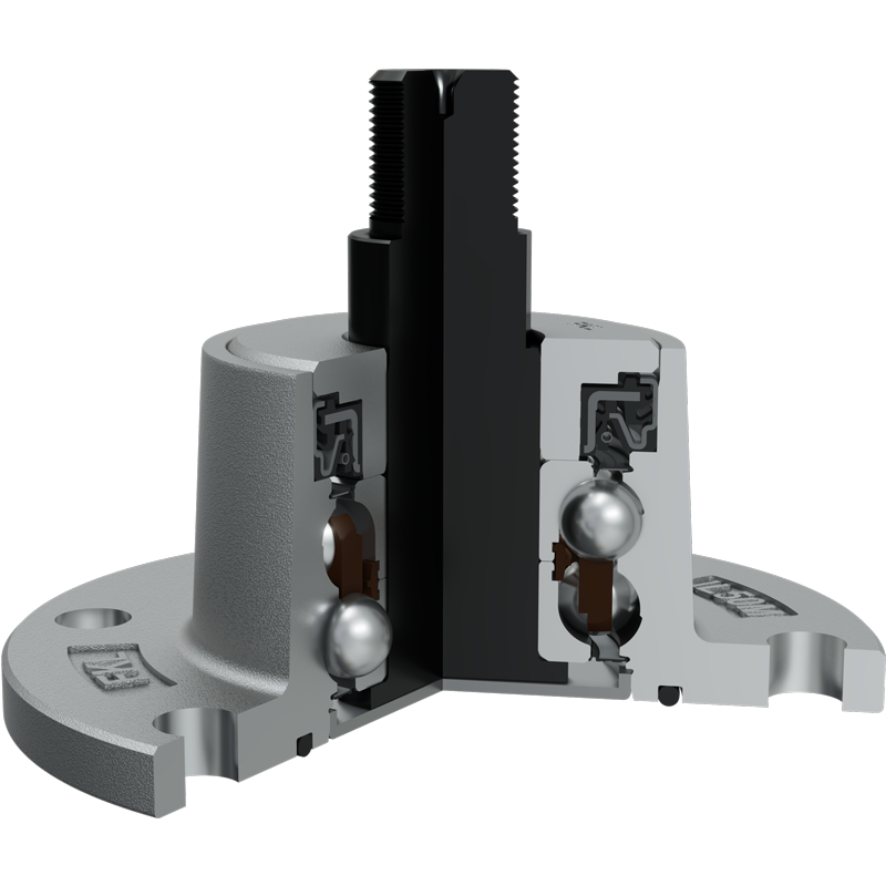 O-ring, Sheet metal shield and RS seal on the base side and RS seal, Dirtblock seal with Forged cover plate on the front side which is exposed to contaminants. O-ring, Sheet metal shield and RS seal together with attached disc eliminates the possibility of contamination from the base side. Dirtblock seal is designed for hard working condition at unfriendly environment. Half metal – half rubber outside diameter provides reliable seal retention in the bore and improves sealing performance. Inside diameter is covered by rubber and improves sealing performance and easy installation. Forged cover plate is additional, strong protection of the Dirtblock seal against mechanical damage. This sealing provides maximum protection against liquid or solid contaminants, which significantly extends bearing service life.