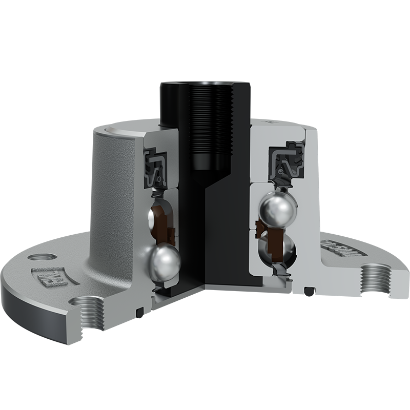 O-ring, Sheet metal shield and RS seal on the base side and RS seal, Dirtblock seal with Forged cover plate on the front side which is exposed to contaminants. O-ring, Sheet metal shield and RS seal together with attached disc eliminates the possibility of contamination from the base side. Dirtblock seal is designed for hard working condition at unfriendly environment. Half metal – half rubber outside diameter provides reliable seal retention in the bore and improves sealing performance. Inside diameter is covered by rubber and improves sealing performance and easy installation. Forged cover plate is additional, strong protection of the Dirtblock seal against mechanical damage. This sealing provides maximum protection against liquid or solid contaminants, which significantly extends bearing service life.