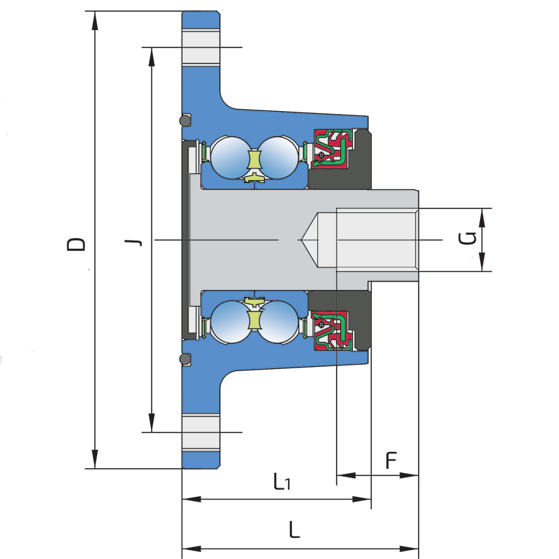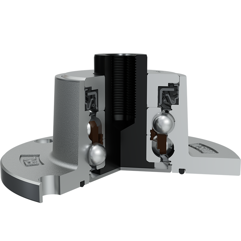 O-ring, Sheet metal shield and RS seal on the base side and RS seal, Dirtblock seal with Forged cover plate on the front side which is exposed to contaminants. O-ring, Sheet metal shield and RS seal together with attached disc eliminates the possibility of contamination from the base side. Dirtblock seal is designed for hard working condition at unfriendly environment. Half metal – half rubber outside diameter provides reliable seal retention in the bore and improves sealing performance. Inside diameter is covered by rubber and improves sealing performance and easy installation. Forged cover plate is additional, strong protection of the Dirtblock seal against mechanical damage. This sealing provides maximum protection against liquid or solid contaminants, which significantly extends bearing service life.