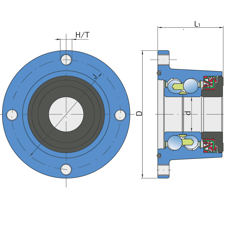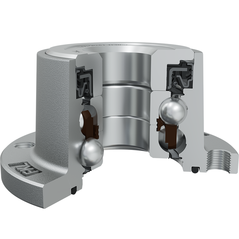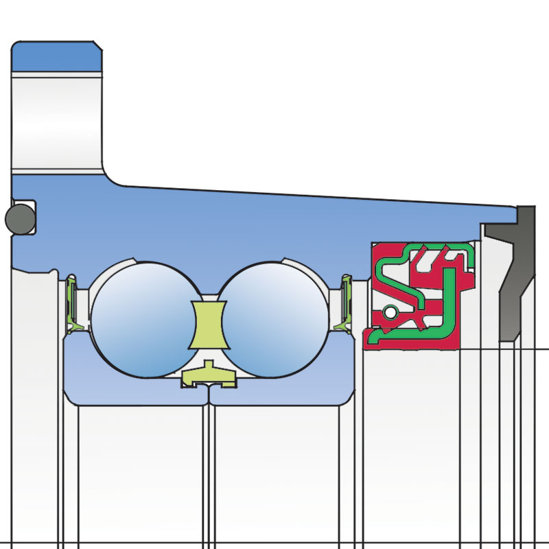 O-ring and RS seal on the base side and RS seal, Dirtblock seal and Forged cover plate on the front side which is exposed to contaminants. O-ring and RS seal together with attached special disc eliminates the possibility of contamination from the base side. Dirtblock seal is designed for hard working conditions at unfriendly environment. Half metal – half rubber outside diameter provides reliable seal retention in the bore and improves sealing performance. Inside diameter is covered by rubber and improves sealing performance and easy installation. Forged cover plate is additional, strong protection of the Dirtblock seal against mechanical damage. This sealing provides maximum protection against liquid or solid contaminants, which significantly extends bearing service life.