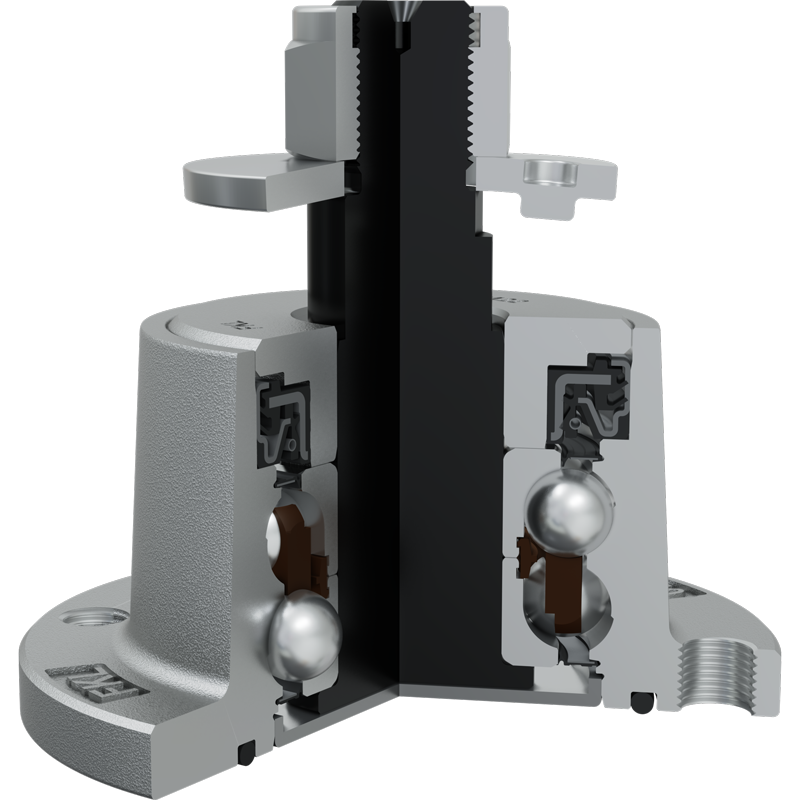 O-ring, Sheet metal shield and RS seal on the base side and RS seal, Dirtblock seal with Forged cover plate on the front side which is exposed to contaminants. O-ring, Sheet metal shield and RS seal together with attached disc eliminates the possibility of contamination from the base side. Dirtblock seal is designed for hard working condition at unfriendly environment. Half metal – half rubber outside diameter provides reliable seal retention in the bore and improves sealing performance. Inside diameter is covered by rubber and improves sealing performance and easy installation. Forged cover plate is additional, strong protection of the Dirtblock seal against mechanical damage. This sealing provides maximum protection against liquid or solid contaminants, which significantly extends bearing service life.