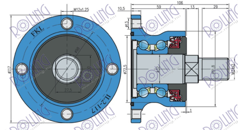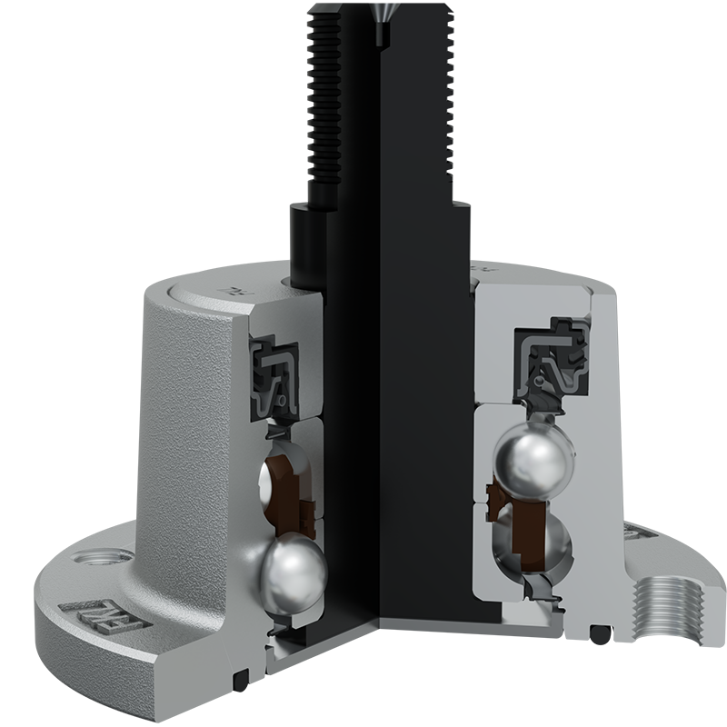 O-ring, Sheet metal shield and RS seal on the base side and RS seal, Dirtblock seal with Forged cover plate on the front side which is exposed to contaminants. O-ring, Sheet metal shield and RS seal together with attached disc eliminates the possibility of contamination from the base side. Dirtblock seal is designed for hard working condition at unfriendly environment. Half metal – half rubber outside diameter provides reliable seal retention in the bore and improves sealing performance. Inside diameter is covered by rubber and improves sealing performance and easy installation. Forged cover plate is additional, strong protection of the Dirtblock seal against mechanical damage. This sealing provides maximum protection against liquid or solid contaminants, which significantly extends bearing service life.