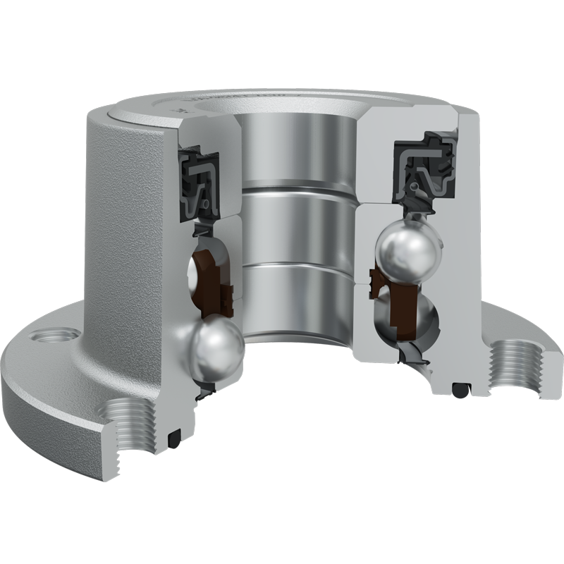 O-ring and RS seal on the base side and RS seal, Dirtblock seal and Forged cover plate on the front side which is exposed to contaminants. O-ring and RS seal together with attached special disc eliminates the possibility of contamination from the base side. Dirtblock seal is designed for hard working conditions at unfriendly environment. Half metal – half rubber outside diameter provides reliable seal retention in the bore and improves sealing performance. Inside diameter is covered by rubber and improves sealing performance and easy installation. Forged cover plate is additional, strong protection of the Dirtblock seal against mechanical damage. This sealing provides maximum protection against liquid or solid contaminants, which significantly extends bearing service life.