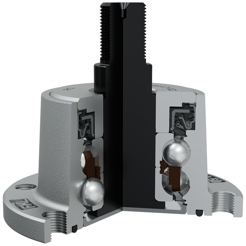 O-ring, Sheet metal shield and RS seal on the base side and RS seal, Dirtblock seal with Forged cover plate on the front side which is exposed to contaminants. O-ring, Sheet metal shield and RS seal together with attached disc eliminates the possibility of contamination from the base side. Dirtblock seal is designed for hard working condition at unfriendly environment. Half metal – half rubber outside diameter provides reliable seal retention in the bore and improves sealing performance. Inside diameter is covered by rubber and improves sealing performance and easy installation. Forged cover plate is additional, strong protection of the Dirtblock seal against mechanical damage. This sealing provides maximum protection against liquid or solid contaminants, which significantly extends bearing service life.