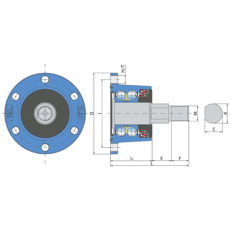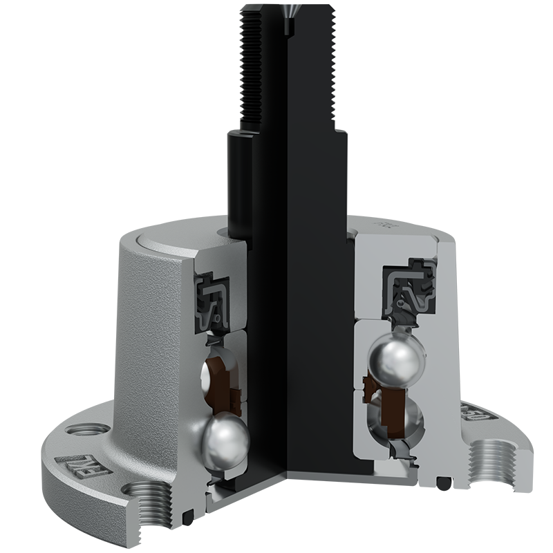 O-ring, Sheet metal shield and RS seal on the base side and RS seal, Dirtblock seal with Forged cover plate on the front side which is exposed to contaminants. O-ring, Sheet metal shield and RS seal together with attached disc eliminates the possibility of contamination from the base side. Dirtblock seal is designed for hard working condition at unfriendly environment. Half metal – half rubber outside diameter provides reliable seal retention in the bore and improves sealing performance. Inside diameter is covered by rubber and improves sealing performance and easy installation. Forged cover plate is additional, strong protection of the Dirtblock seal against mechanical damage. This sealing provides maximum protection against liquid or solid contaminants, which significantly extends bearing service life.