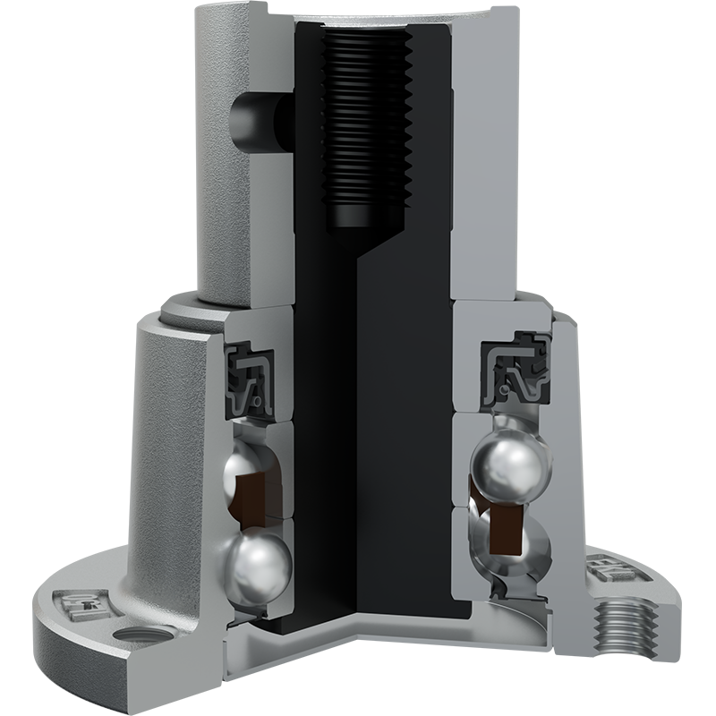 Sheet metal shield and RS seal on the base side and Dirtblock seal and Forged cover plate on the front side which is exposed to contaminants. Sheet metal shield and RS seal together with attached disc eliminates the possibility of contamination from the base side. Dirtblock seal is designed for hard working condition at unfriendly environment. Half metal – half rubber outside diameter provides reliable seal retention in the bore and improves sealing performance. Inside diameter is covered by rubber and improves sealing performance and easy installation. Forged cover plate is additional, strong protection of the Dirtblock seal against mechanical damage. This sealing provides maximum protection against liquid or solid contaminants, which significantly extends bearing service life.