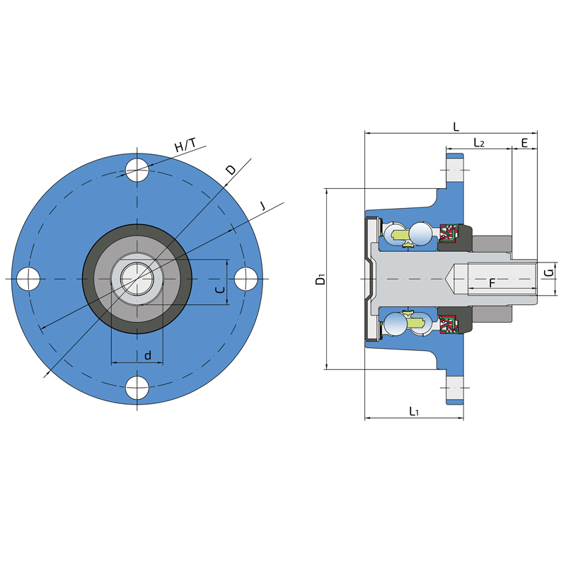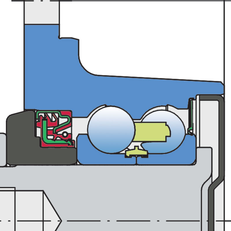 Dirtblock seal and Forged cover plate on the base side and Sheet metal shield with RS seal on the front side. Dirtblock seal and Forged cover significantly slows down the contamination. Sheet metal shield also protects the bearing from mechanical damages.