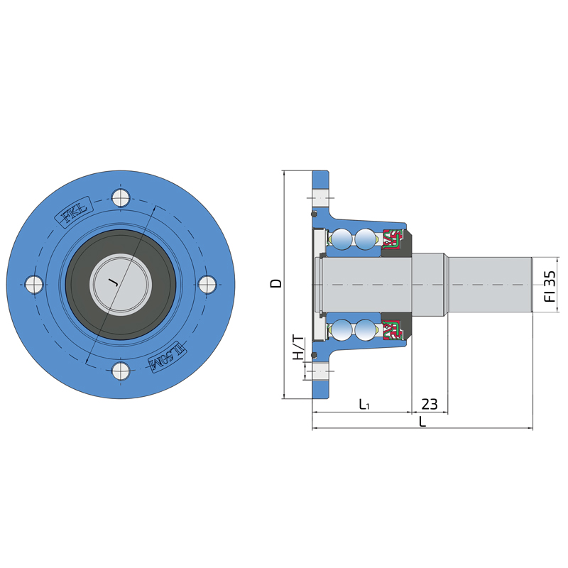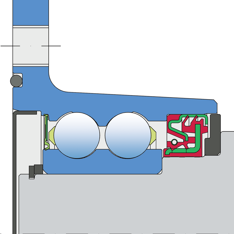 Sealing O-RING + SHEET METAL SHIELD + RS SEAL / DIRTBLOCK SEAL + FORGED COVER PLATE O-ring, Sheet metal shield and RS seal on the base side and Dirtblock seal and Forged cover plate on the front side which is exposed to contaminants. O-ring, Sheet metal shield and RS seal together with attached disc eliminates the possibility of contamination from the base side. Dirtblock seal is designed for hard working condition at unfriendly environment. Half metal – half rubber outside diameter provides reliable seal retention in the bore and improves sealing performance. Inside diameter is covered by rubber and improves sealing performance and easy installation. Forged cover plate is additional, strong protection of the Dirtblock seal against mechanical damage. This sealing provides maximum protection against liquid or solid contaminants, which significantly extends bearing service life.