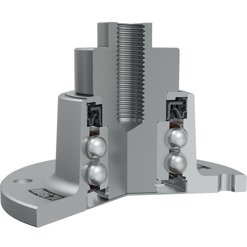 Sheet metal shield and RS seal on the base side and Dirtblock seal and Forged cover plate on the front side which is exposed to contaminants. Sheet metal shield and RS seal together with attached disc eliminates the possibility of contamination from the base side. Dirtblock seal is designed for hard working condition at unfriendly environment. Half metal – half rubber outside diameter provides reliable seal retention in the bore and improves sealing performance. Inside diameter is covered by rubber and improves sealing performance and easy installation. Forged cover plate is additional, strong protection of the Dirtblock seal against mechanical damage. This sealing provides maximum protection against liquid or solid contaminants, which significantly extends bearing service life.