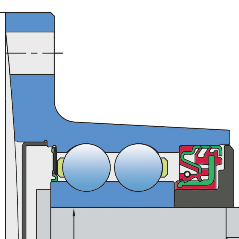 Sheet metal shield and RS seal on the base side and Dirtblock seal and Forged cover plate on the front side which is exposed to contaminants. Sheet metal shield and RS seal together with attached disc eliminates the possibility of contamination from the base side. Dirtblock seal is designed for hard working condition at unfriendly environment. Half metal – half rubber outside diameter provides reliable seal retention in the bore and improves sealing performance. Inside diameter is covered by rubber and improves sealing performance and easy installation. Forged cover plate is additional, strong protection of the Dirtblock seal against mechanical damage. This sealing provides maximum protection against liquid or solid contaminants, which significantly extends bearing service life.
