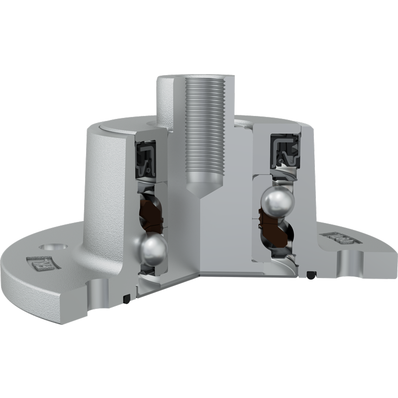 O-ring, Sheet metal shield and S seal on the base side and S seal, Dirtblock seal with Forged cover plate on the front side which is exposed to contaminants. O-ring, Sheet metal shield and S seal together with attached disc eliminates the possibility of contamination from the base side. Dirtblock seal is designed for hard working condition at unfriendly environment. Half metal – half rubber outside diameter provides reliable seal retention in the bore and improves sealing performance. Inside diameter is covered by rubber and improves sealing performance and easy installation. Forged cover plate is additional, strong protection of the Dirtblock seal against mechanical damage. This sealing provides maximum protection against liquid or solid contaminants, which significantly extends bearing service life.