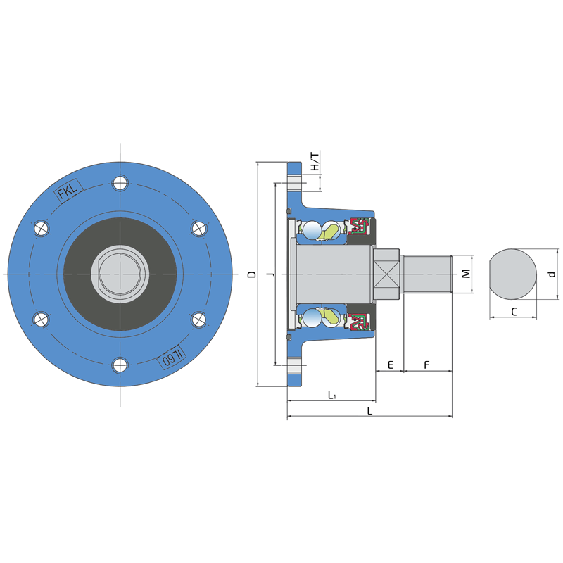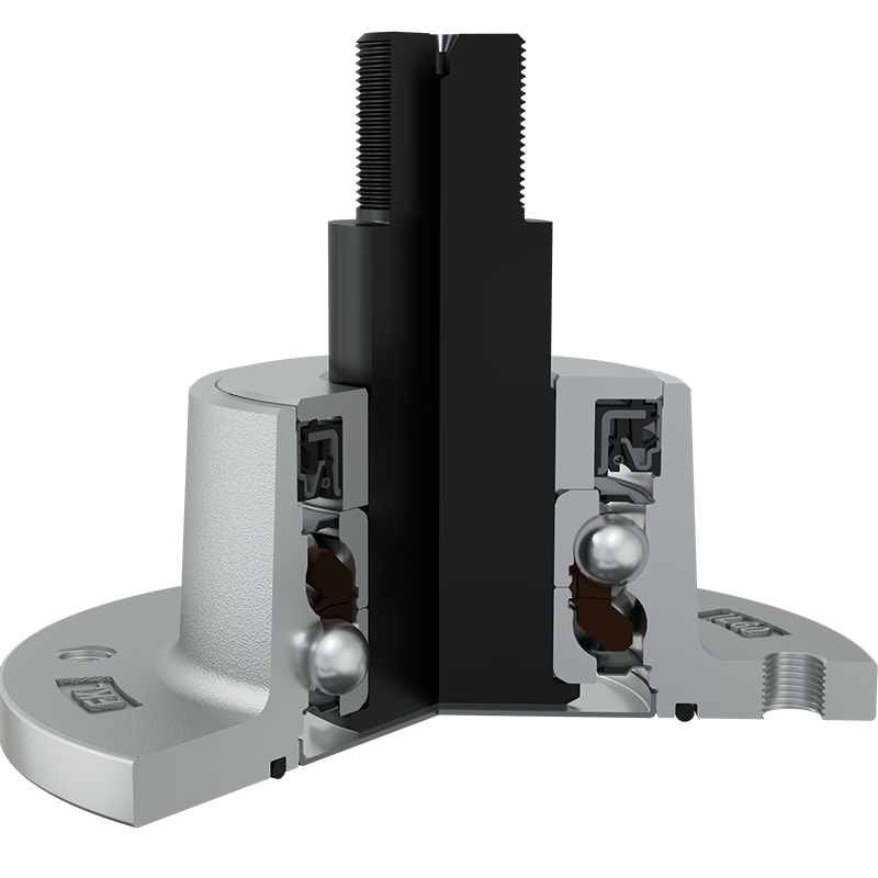 O-ring, Sheet metal shield and S seal on the base side and S seal, Dirtblock seal with Forged cover plate on the front side which is exposed to contaminants. O-ring, Sheet metal shield and S seal together with attached disc eliminates the possibility of contamination from the base side. Dirtblock seal is designed for hard working condition at unfriendly environment. Half metal – half rubber outside diameter provides reliable seal retention in the bore and improves sealing performance. Inside diameter is covered by rubber and improves sealing performance and easy installation. Forged cover plate is additional, strong protection of the Dirtblock seal against mechanical damage. This sealing provides maximum protection against liquid or solid contaminants, which significantly extends bearing service life.