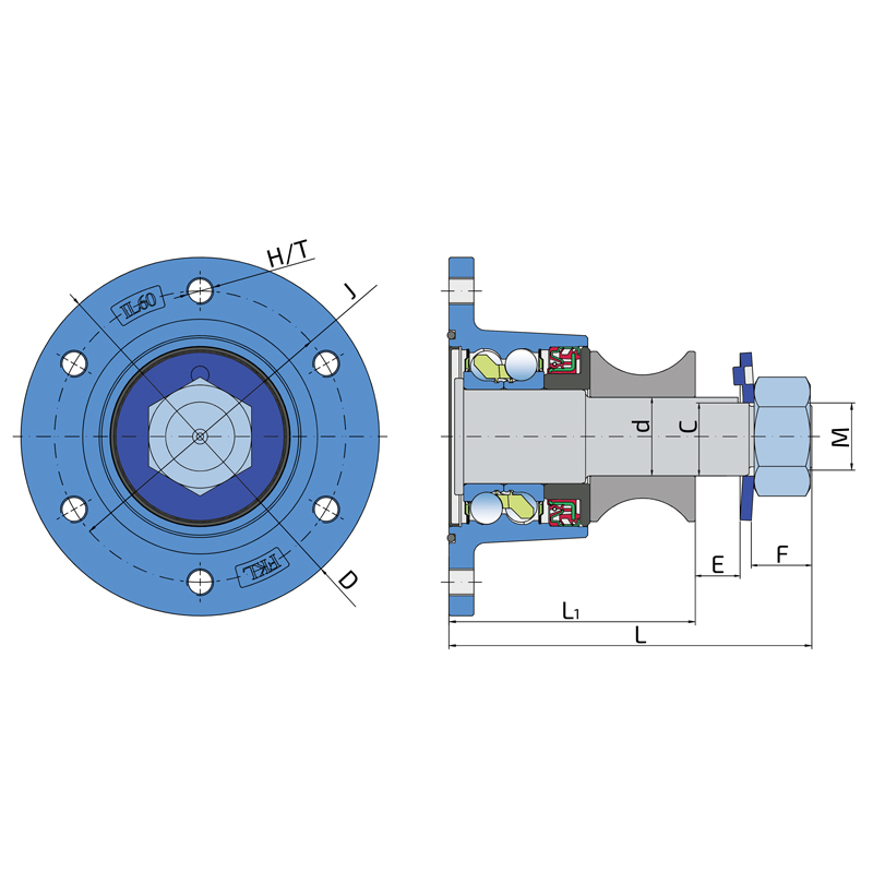 O-ring, Sheet metal shield and S seal on the base side and S seal, Dirtblock seal with Forged cover plate on the front side which is exposed to contaminants. O-ring, Sheet metal shield and S seal together with attached disc eliminates the possibility of contamination from the base side. Dirtblock seal is designed for hard working condition at unfriendly environment. Half metal – half rubber outside diameter provides reliable seal retention in the bore and improves sealing performance. Inside diameter is covered by rubber and improves sealing performance and easy installation. Forged cover plate is additional, strong protection of the Dirtblock seal against mechanical damage. This sealing provides maximum protection against liquid or solid contaminants, which significantly extends bearing service life.