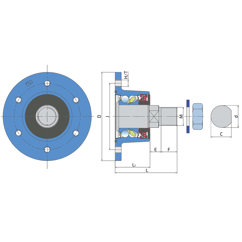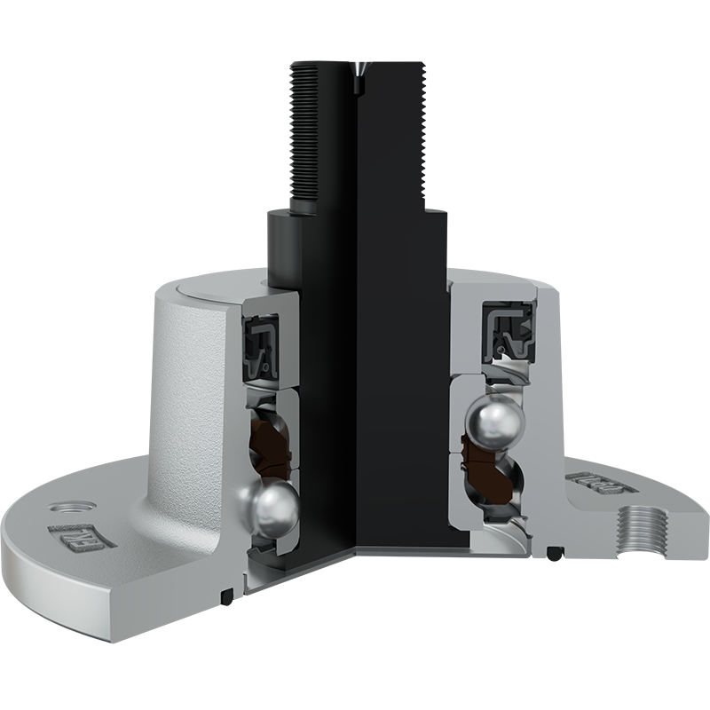 O-ring, Sheet metal shield and S seal on the base side and S seal, Dirtblock seal with Forged cover plate on the front side which is exposed to contaminants. O-ring, Sheet metal shield and S seal together with attached disc eliminates the possibility of contamination from the base side. Dirtblock seal is designed for hard working condition at unfriendly environment. Half metal – half rubber outside diameter provides reliable seal retention in the bore and improves sealing performance. Inside diameter is covered by rubber and improves sealing performance and easy installation. Forged cover plate is additional, strong protection of the Dirtblock seal against mechanical damage. This sealing provides maximum protection against liquid or solid contaminants, which significantly extends bearing service life.