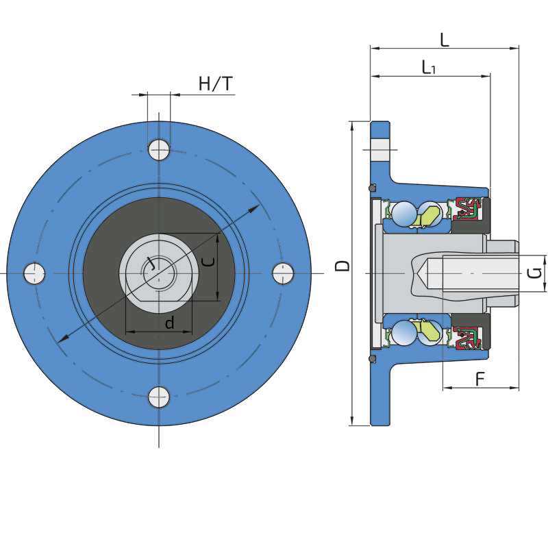 O-ring, Sheet metal shield and S seal on the base side and S seal, Dirtblock seal with Forged cover plate on the front side which is exposed to contaminants. O-ring, Sheet metal shield and S seal together with attached disc eliminates the possibility of contamination from the base side. Dirtblock seal is designed for hard working condition at unfriendly environment. Half metal – half rubber outside diameter provides reliable seal retention in the bore and improves sealing performance. Inside diameter is covered by rubber and improves sealing performance and easy installation. Forged cover plate is additional, strong protection of the Dirtblock seal against mechanical damage. This sealing provides maximum protection against liquid or solid contaminants, which significantly extends bearing service life.