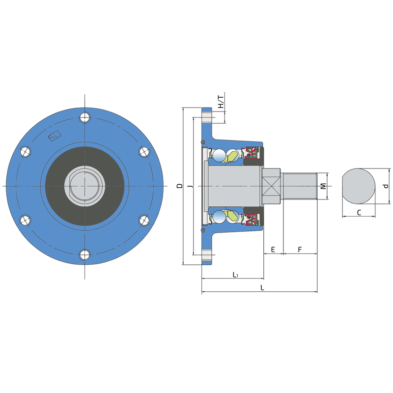 O-ring, Sheet metal shield and S seal on the base side and S seal, Dirtblock seal with Forged cover plate on the front side which is exposed to contaminants. O-ring, Sheet metal shield and S seal together with attached disc eliminates the possibility of contamination from the base side. Dirtblock seal is designed for hard working condition at unfriendly environment. Half metal – half rubber outside diameter provides reliable seal retention in the bore and improves sealing performance. Inside diameter is covered by rubber and improves sealing performance and easy installation. Forged cover plate is additional, strong protection of the Dirtblock seal against mechanical damage. This sealing provides maximum protection against liquid or solid contaminants, which significantly extends bearing service life.