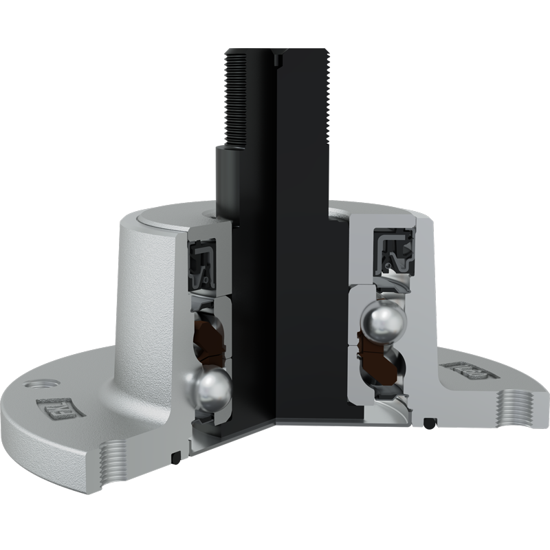 O-ring, Sheet metal shield and S seal on the base side and S seal, Dirtblock seal with Forged cover plate on the front side which is exposed to contaminants. O-ring, Sheet metal shield and S seal together with attached disc eliminates the possibility of contamination from the base side. Dirtblock seal is designed for hard working condition at unfriendly environment. Half metal – half rubber outside diameter provides reliable seal retention in the bore and improves sealing performance. Inside diameter is covered by rubber and improves sealing performance and easy installation. Forged cover plate is additional, strong protection of the Dirtblock seal against mechanical damage. This sealing provides maximum protection against liquid or solid contaminants, which significantly extends bearing service life.