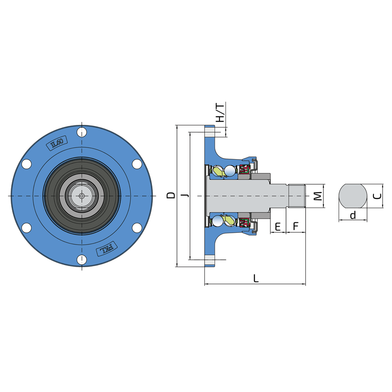 Sealing SHEET METAL SHIELD + S SEAL / S SEAL + DIRTBLOCK SEAL + METAL SHIELD Sheet metal shield and S seal on the base side and S seal and Dirtblock seal with Metal shield on the front side which is exposed to contaminants. Sheet metal shield and S seal together with attached disc eliminates the possibility of contamination from the base side. Dirtblock seal is designed for hard working condition at unfriendly environment. Half metal – half rubber outside diameter provides reliable seal retention in the bore and improves sealing performance. Inside diameter is covered by rubber and improves sealing performance and easy installation. Forged cover plate is additional, strong protection of the Dirtblock seal against mechanical damage. This sealing provides maximum protection against liquid or solid contaminants, which significantly extends bearing service life.