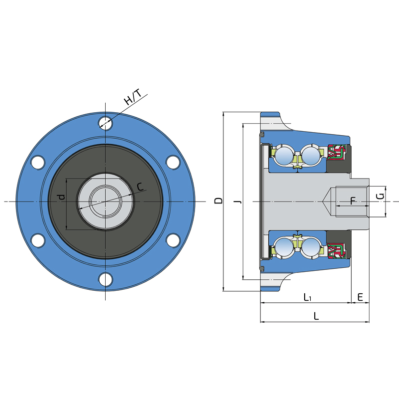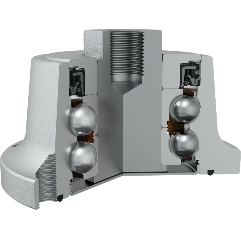 Sealing O-RING + SHEET METAL SHIELD + RS SEAL / DIRTBLOCK SEAL + FORGED COVER PLATE O-ring, Sheet metal shield and RS seal on the base side and Dirtblock seal and Forged cover plate on the front side which is exposed to contaminants. O-ring, Sheet metal shield and RS seal together with attached disc eliminates the possibility of contamination from the base side. Dirtblock seal is designed for hard working condition at unfriendly environment. Half metal – half rubber outside diameter provides reliable seal retention in the bore and improves sealing performance. Inside diameter is covered by rubber and improves sealing performance and easy installation. Forged cover plate is additional, strong protection of the Dirtblock seal against mechanical damage. This sealing provides maximum protection against liquid or solid contaminants, which significantly extends bearing service life.