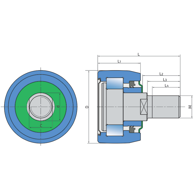 Front side is totally sealed with a Sheet metal shield which prevents all kind of contaminations. The base side is protected with 2-lip seal and the Metal flinger ring to protect the 2-lip seal from mechanical damages.