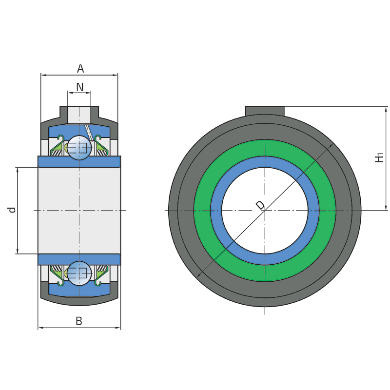 3-lip seal on the both side of the bearing, provides equal protection against contamination. Recommended for application where the possibility of contamination is the same on the both side.